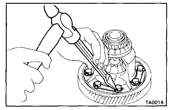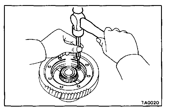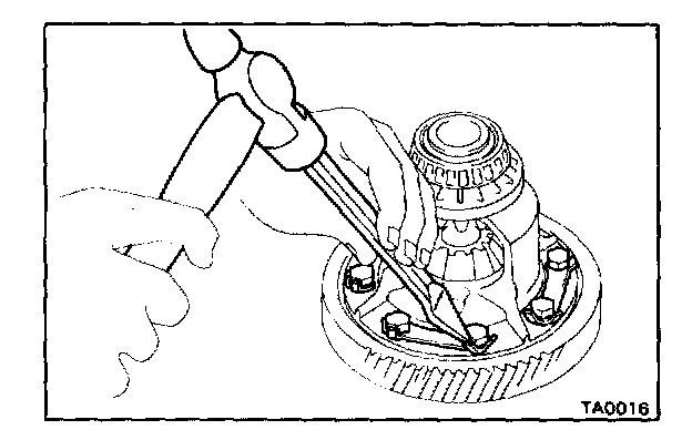 c. Using a copper hammer, tap on the ring gear to remove it from the case.