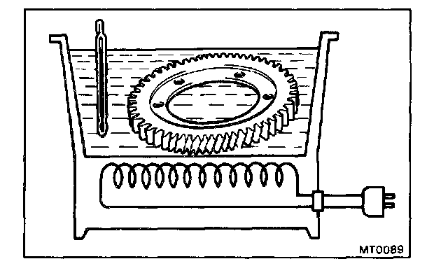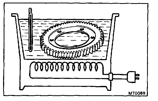e. Heat the ring gear to about 100 °C (212 °F) in an oil bath.