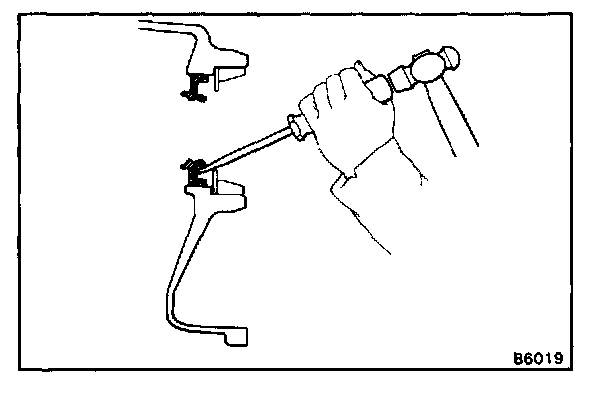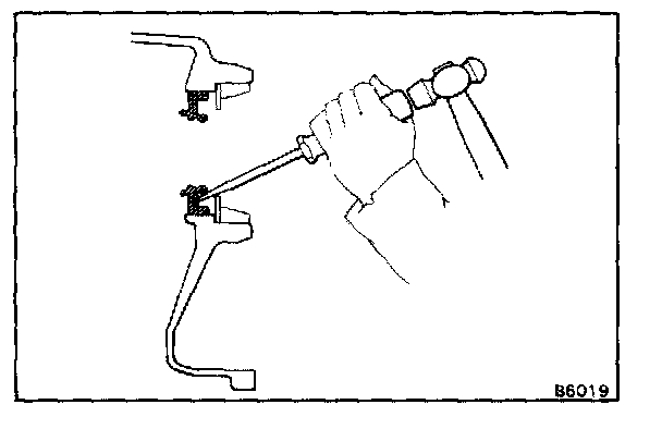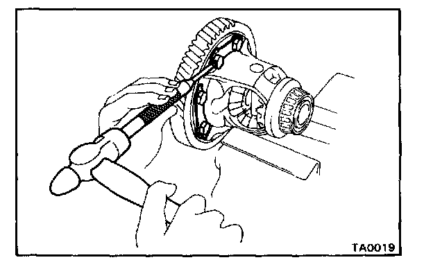 1. Using a hammer and a punch, drive the lock pin through the case and hole in the pinion shaft.