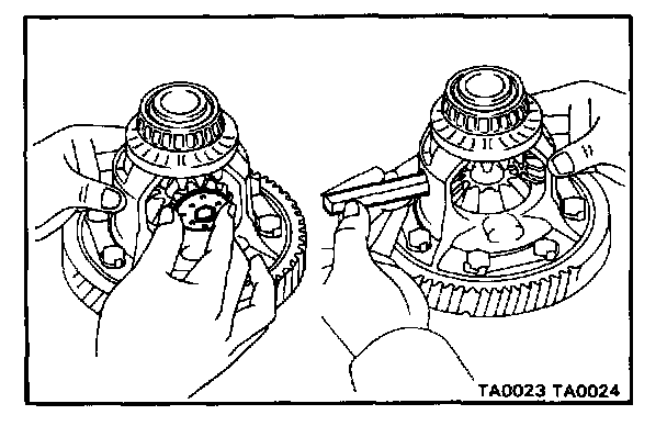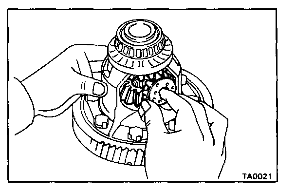 If the backlash is out of specification, install the correct thrust washer to the side gears.