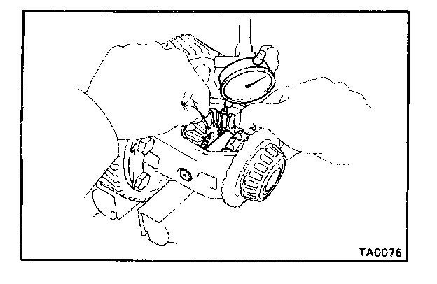 Measure the backlash of the side gear while holding one pinion toward the case.