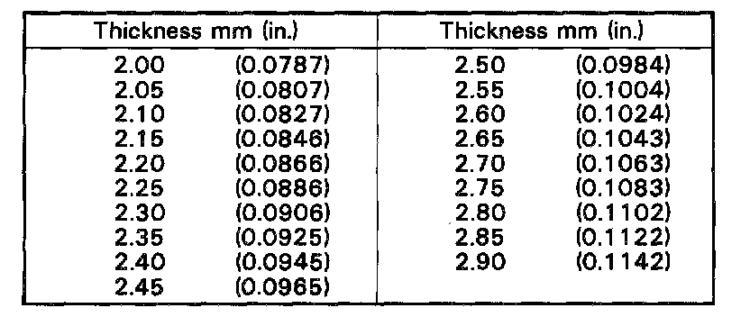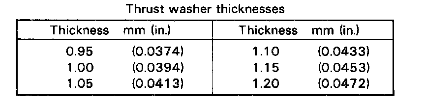 e. Refering to the table below, select thrust washers which will ensure that the backlash is within specification. Try to select washers of the same size of both sides.