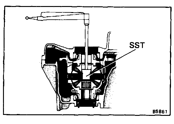 b. Using SST and a torque meter, measure the preload of the side bearing.