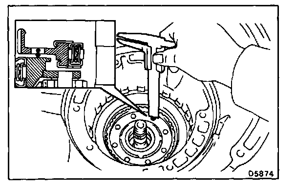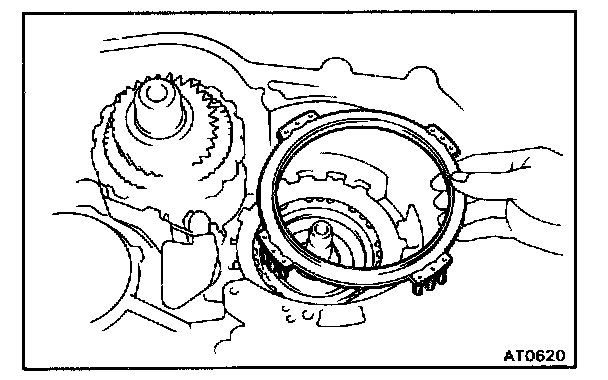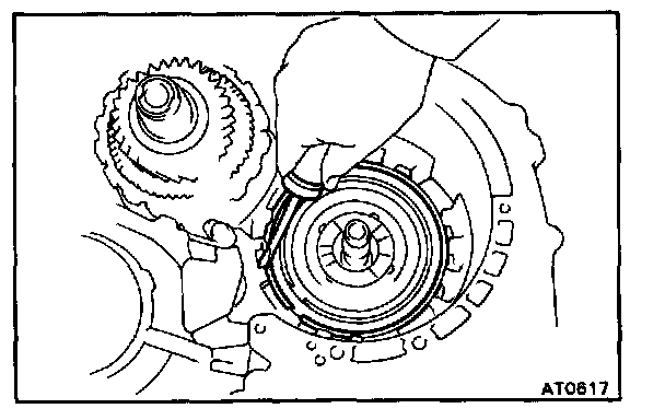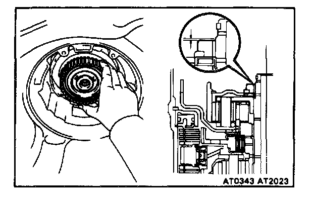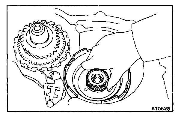 CAUTION: Do not push on the oil pump strongly or the oil seal ring will stick to the direct clutch drum.
