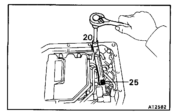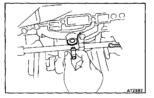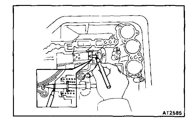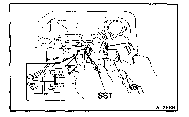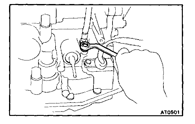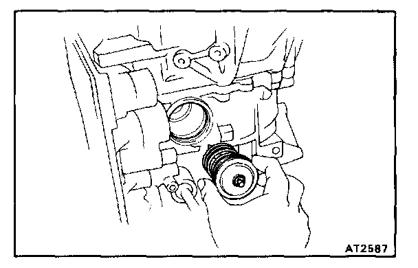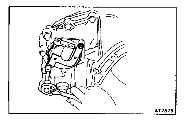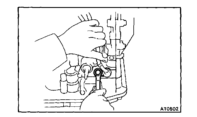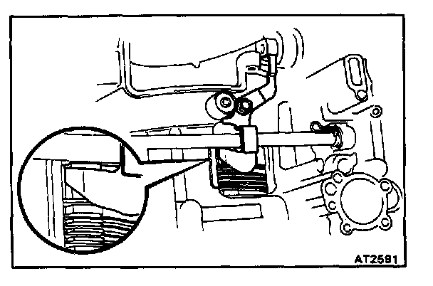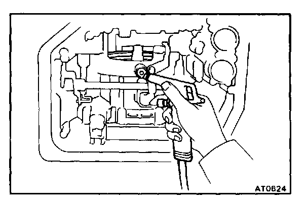b. Check that the manual valve lever is in contact with the center of the roller at the tip of the detent spring.
