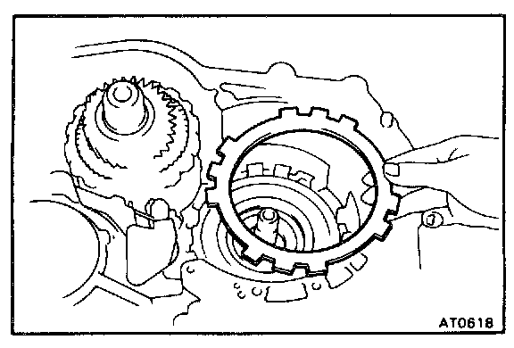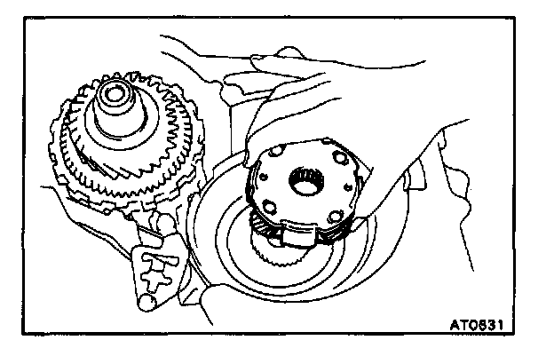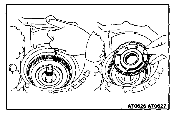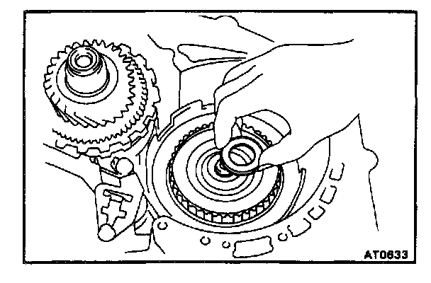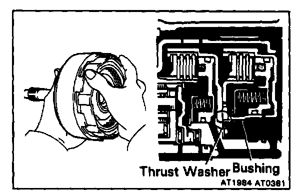 e. If the flukes of the discs are meshed with the hub correctly, the end of the bushing with the direct clutch drum will be flush with the surface of the forward clutch.