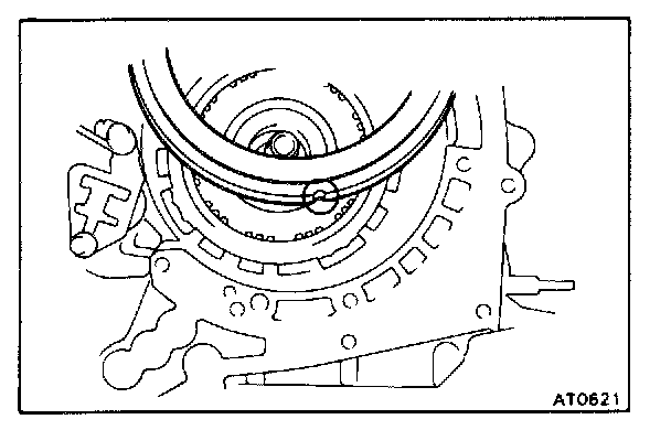 d. Check that the front end of the piston rod contacts the center of the second brake band depression.