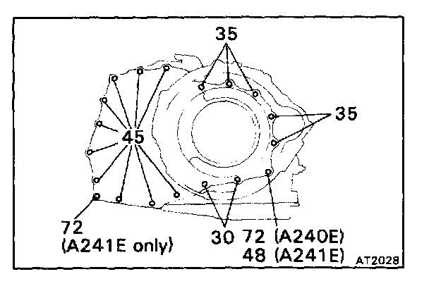 NOTE: Each bolt length (mm) is indicated in the figure. Hand tighten all the bolts first. Then, tighten them with a torque wrench.