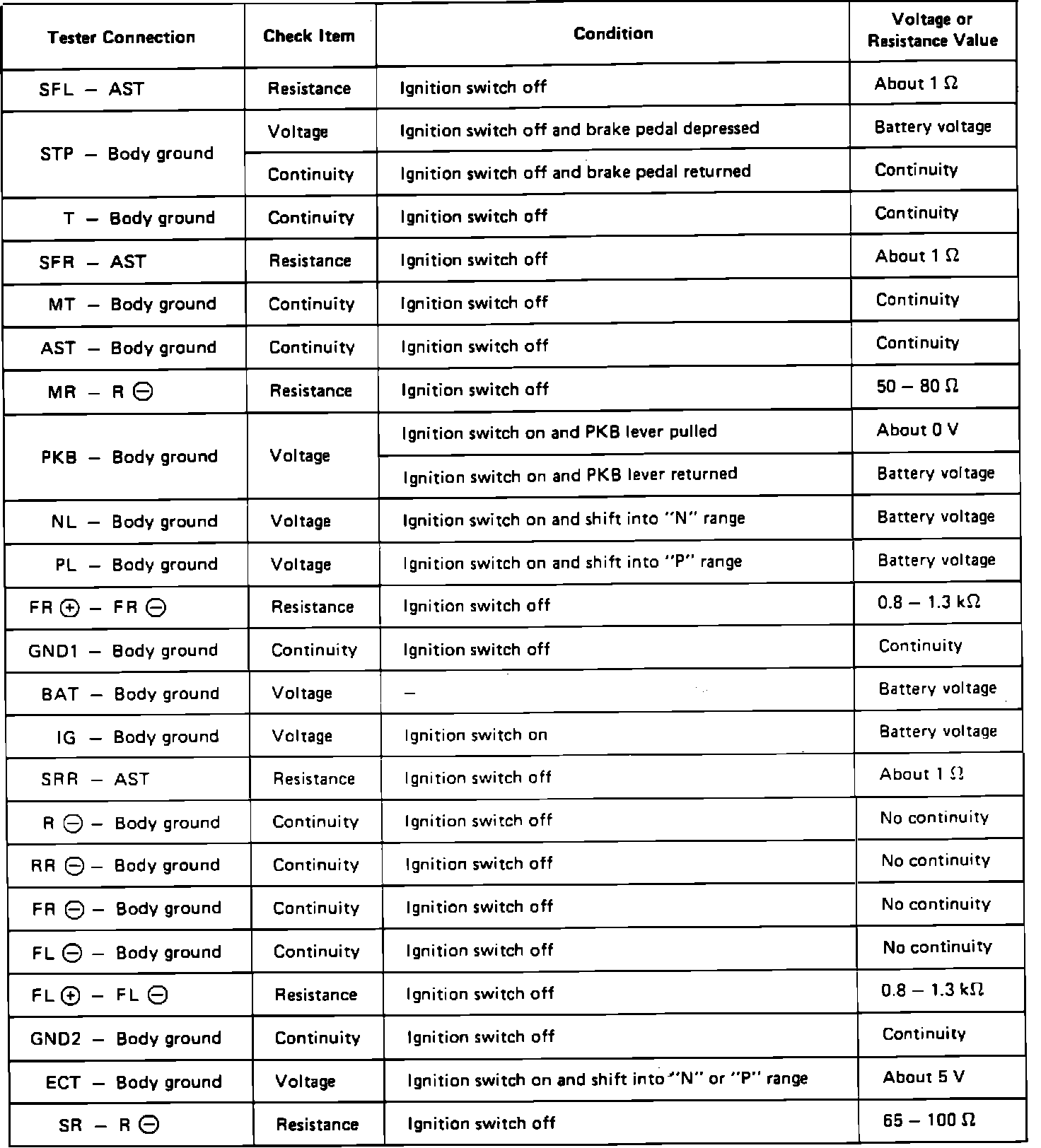 Connector Test Chart (Disconnected):