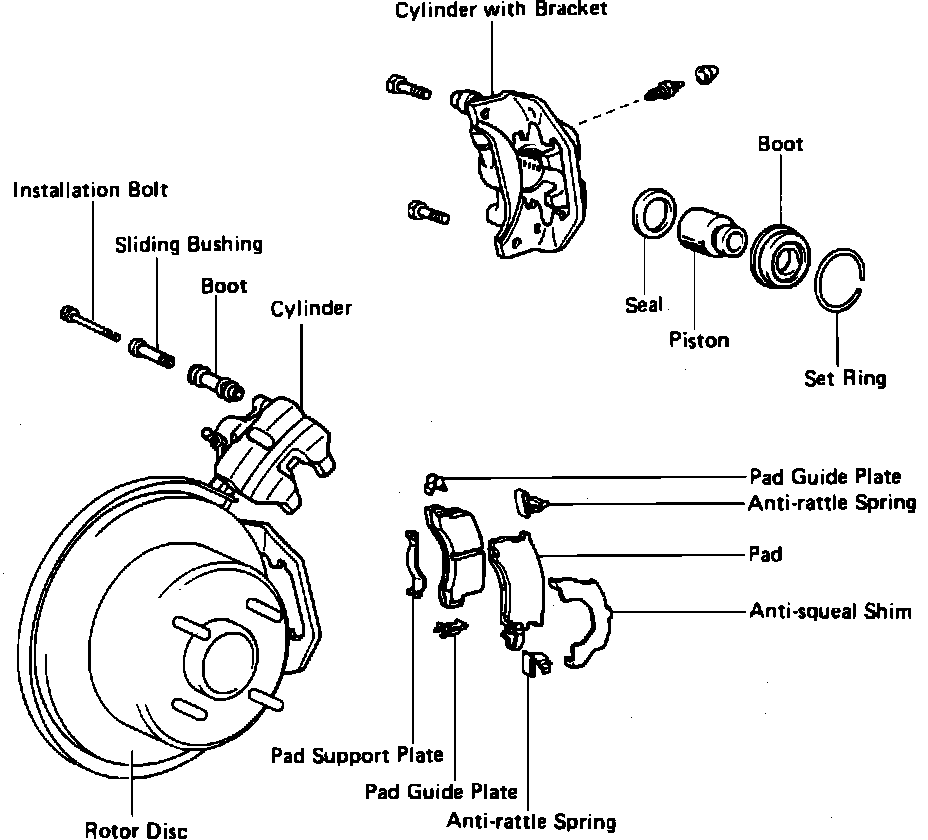 Fig. 1 Exploded View Of Rear Disc Brake Caliper Assembly. Supra & Celica:
