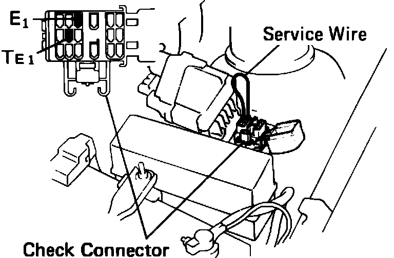 4. Using a service wire, connect terminals TE1 and E1 of the check connector while maintaining engine speed at 2,500 rpm. Fig. 56