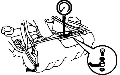 4. Connect a suitable fuel pressure gauge to the fuel rail using the union bolt and gaskets to provide a tight seal.