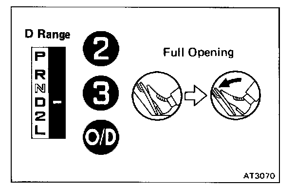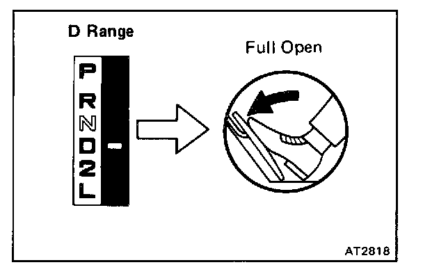 Shift into the D range and hold the accelerator pedal constant at the full throttle valve opening position.