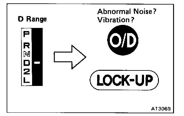 c. Run at the D range lock-up or O/D gear and check for abnormal noise and vibration.