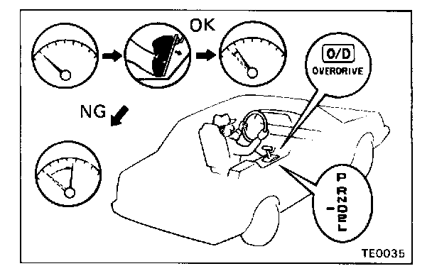 1. Drive in D range, O/D gear, at a steady speed (lock-up ON) of about 75 km/h (47 mph).