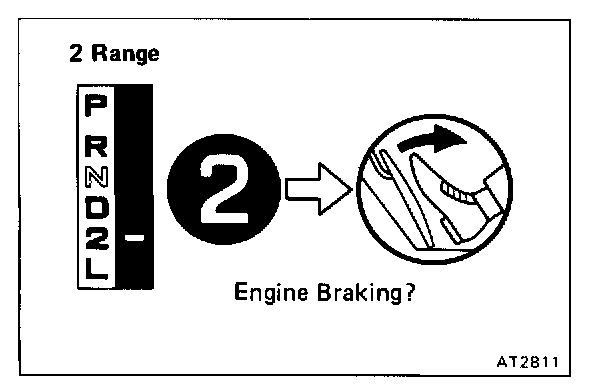 b. While running in the 2 range and 2nd gear, release the accelerator pedal and check the engine braking effect.
