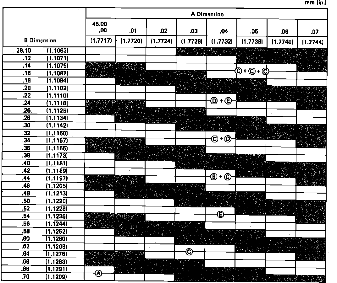 c. To determine side bearing shim thickness ``C,'' use the following formula: ``C''=``A'' - ``B'' - .6358 inch (16.15mm).