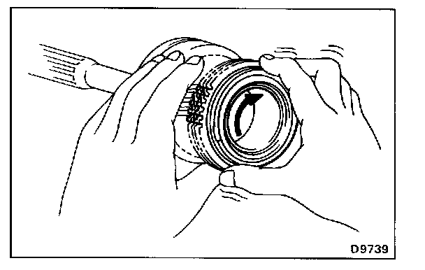 INSPECT SYNCHRONIZER RINGa. Turn the ring and push it in to check the braking action.
