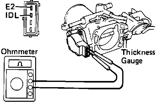 2. Connect an Ohmmeter to terminals IDL and E2 of the TPS after removing the connector.