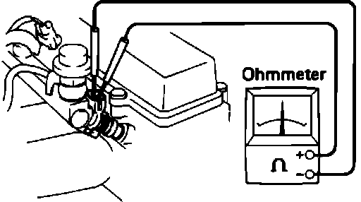 7. Using an Ohmmeter, measure the resistance across the injector terminals.