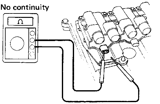 Using an ohmmeter, check that there is no continuity between the ignition coil terminal and body ground.