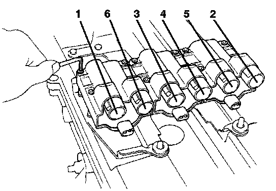 (b) Install the high-tension cords in shown in the illustration; No.5 and No.6 No.3 and No.4, and No.1 and No.2.
