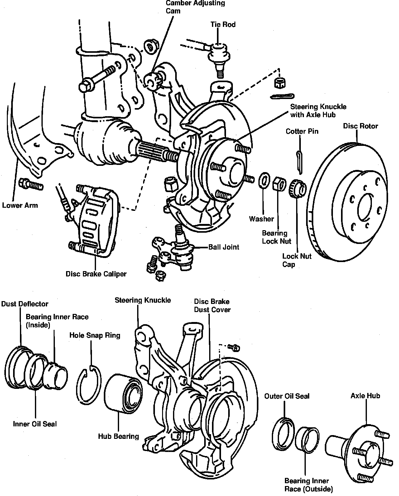 Fig. 3 Exploded View Of Axle Hub & Steering Knuckle.: