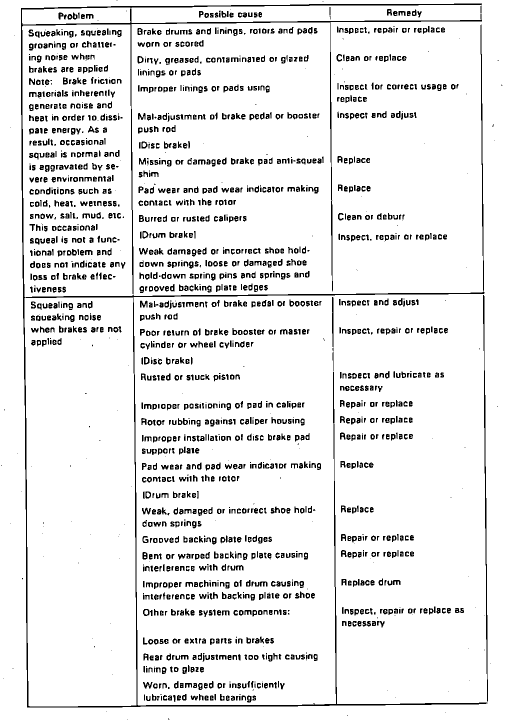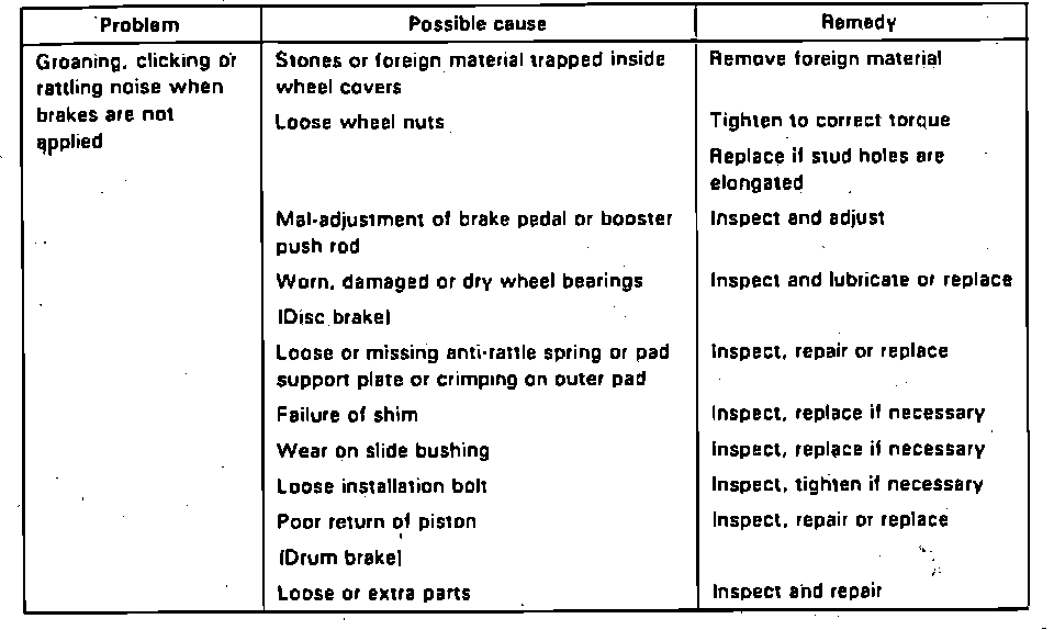 Refer to Fig. 1 for general troubleshooting of the brake system.