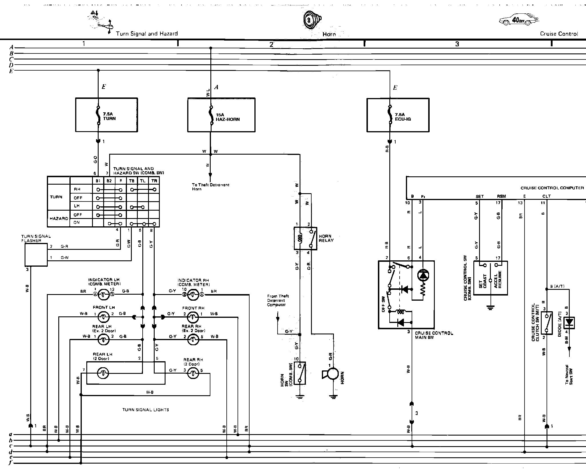 ���Y�Turn Signal/Hazard, Horn, Cruise Control, Stop Lights, Taillights, Illumination And Headlights Wiring Circuit: