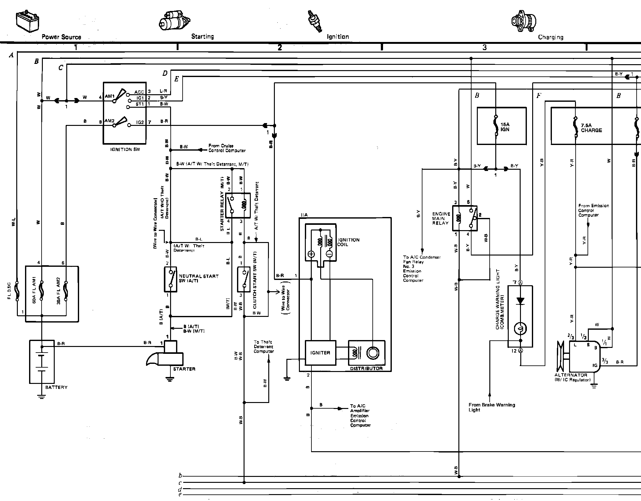 ��2<Battery, Starting, Ignition, Charging, Emission Control (Except California), Theft Deterrant System, Radiator And Condenser Fan Wiring Circuits: