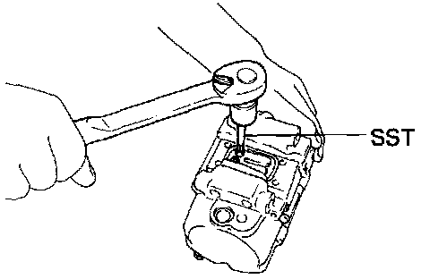 (b) Using a torque wrench and SST, tighten the two through bolts. SST 07110-61050