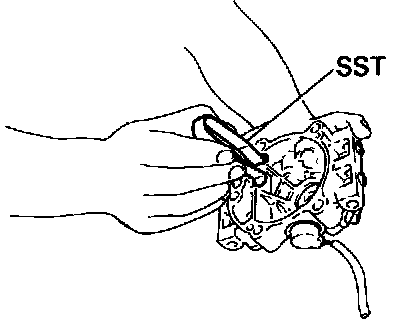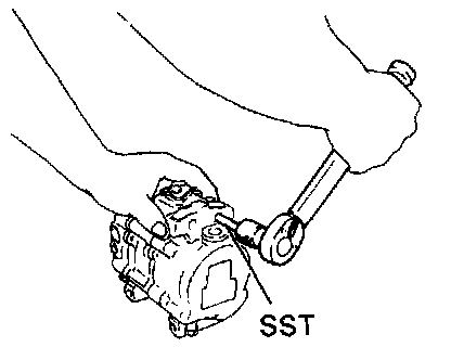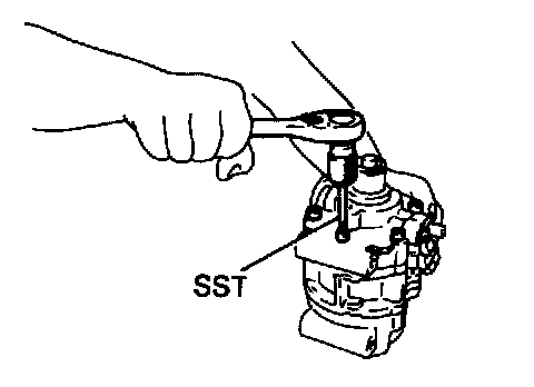 (b) Remove the four bolts with the SST. SST 07110-61050