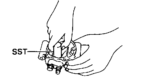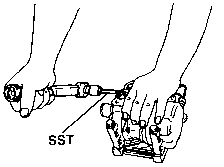 Using a torque wrench and SST, gradually tighten the two bolts. SST 07110-61050