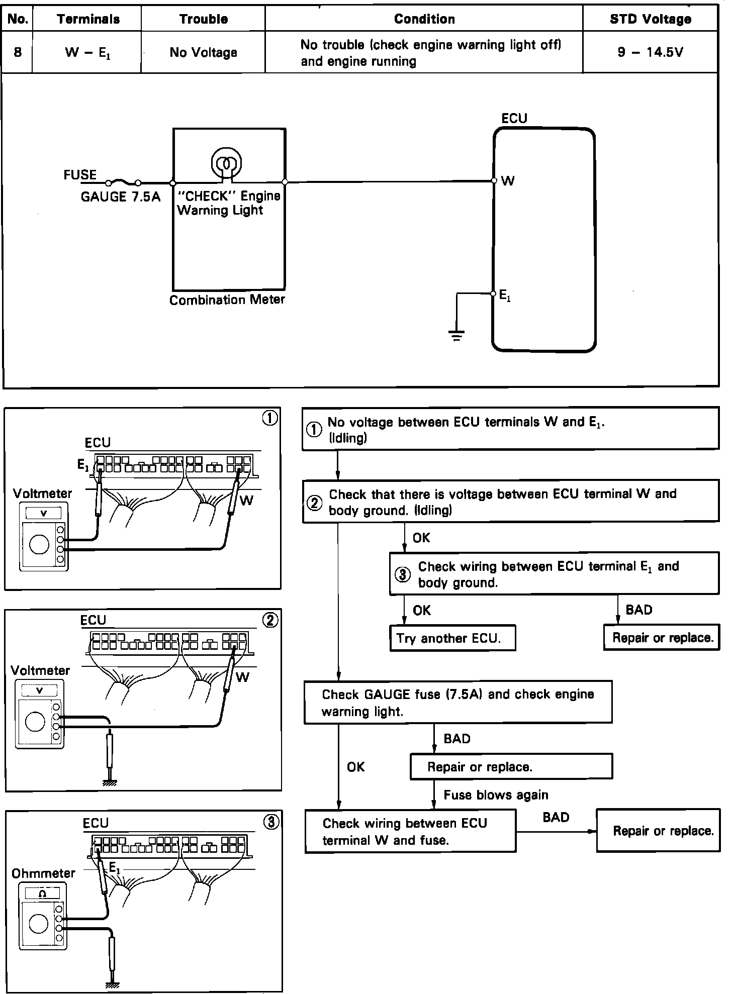 "Check Engine" Warning Light Circuit Test: