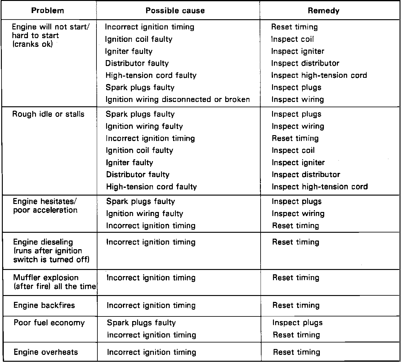 Troubleshooting Chart: