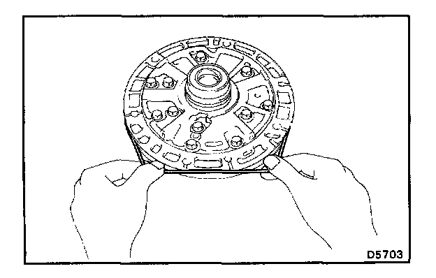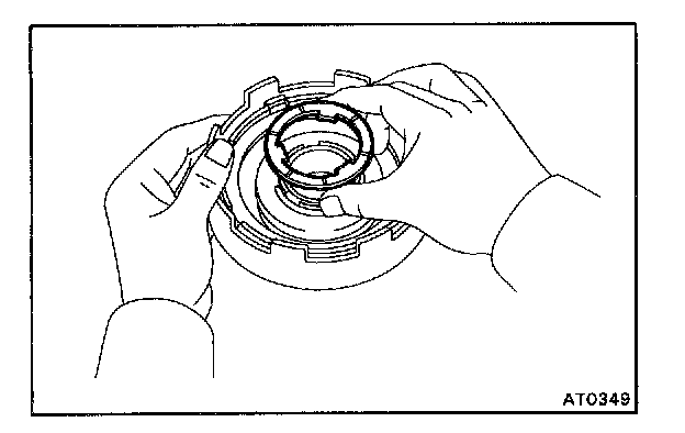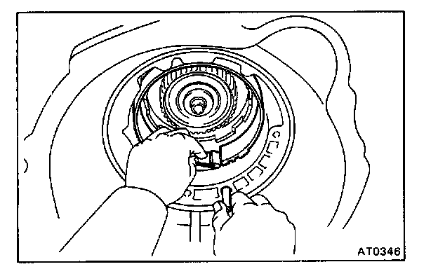 d. Mesh the hub with the flukes of the direct clutch while turning the clutch drum or forward clutch.