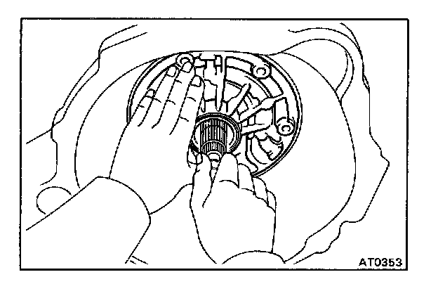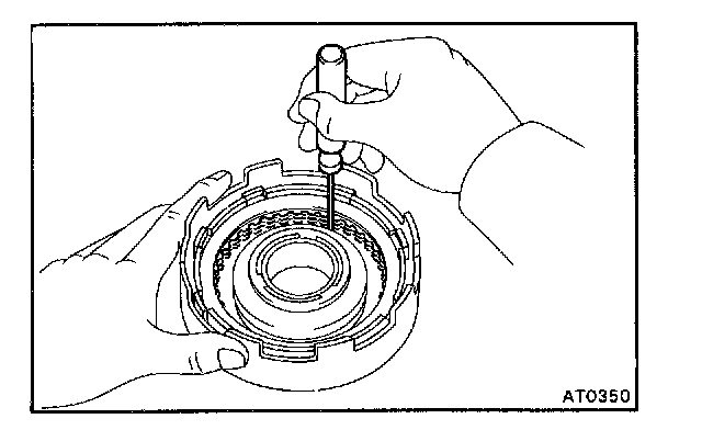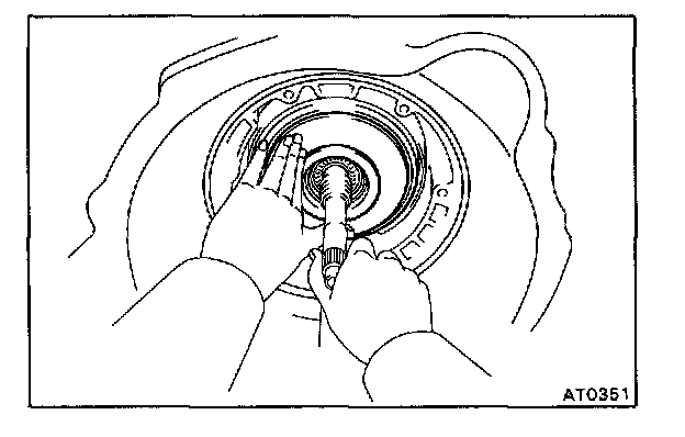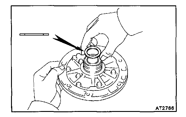 CAUTION: Do not push on the oil pump strongly or the oil seal ring will stick to the direct clutch drum.