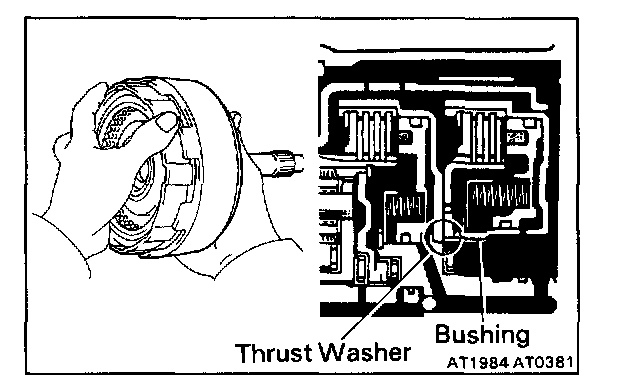 e. If the flukes of the discs are meshed with the hub correctly, the end of the bushing with the direct clutch drum will be flush with the surface of the forward clutch.