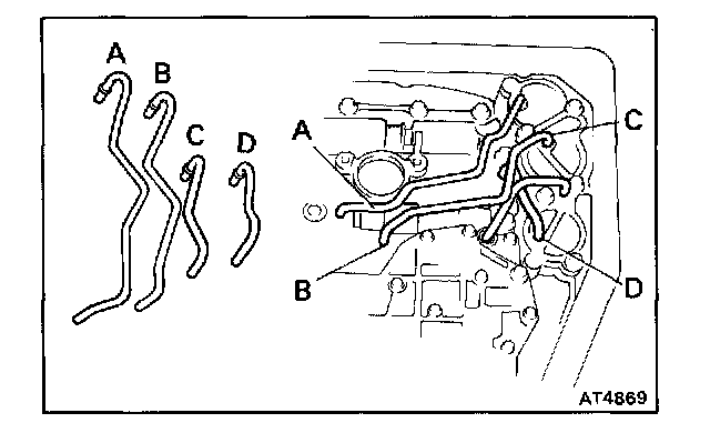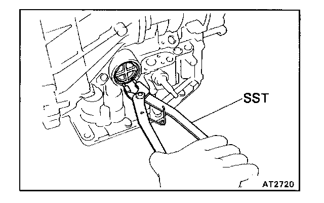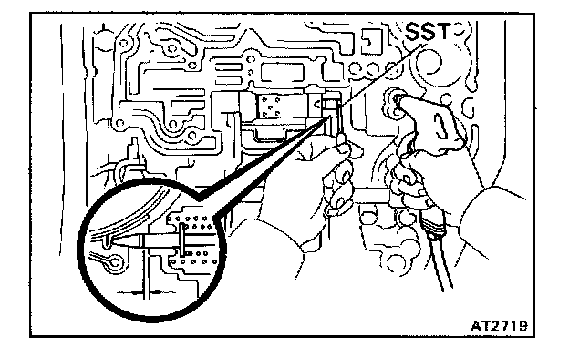 CAUTION: Do not entangle the kick-down switch wire or solenoid wire.