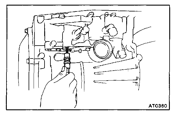 e. Check that the front end of the piston rod contacts the center of the second brake band depression.