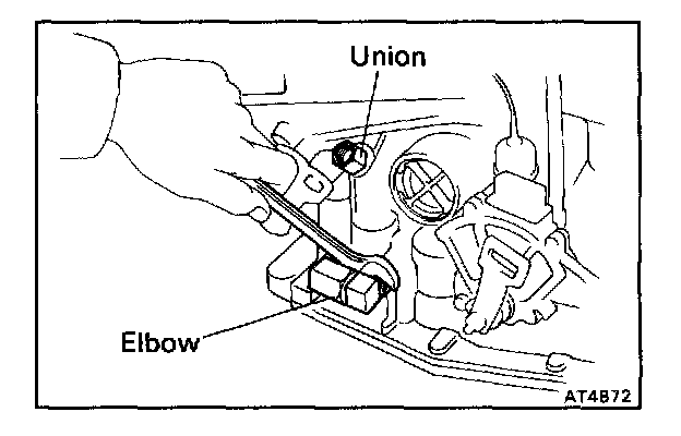 c. Install the union and elbow to the transaxle case.