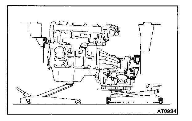 a. Hold the engine and transaxle with two jacks, or a chain block and jack.