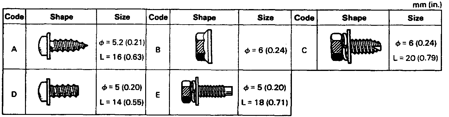 HINT: Screw sizes in the previous illustration are indicated by following the code below for removal and installation of safety pad.