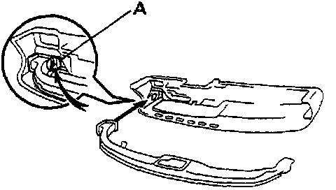 ^ Insert the flange of def-noule between the rib (A) and the safety pad.