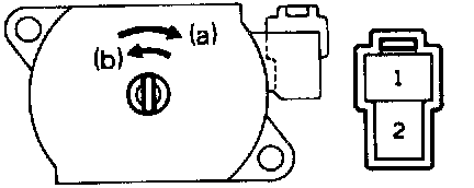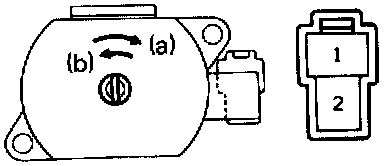 (a) Connect the positive (+) lead from the battery to terminal 1 and the negative (-) lead to terminal 2, check that the motor turns clockwise (moves to rear side).