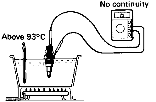 (a) Using an ohmmeter, check that there is no continuity between the terminal and body when the coolant temperature is above 93°C (199°F).