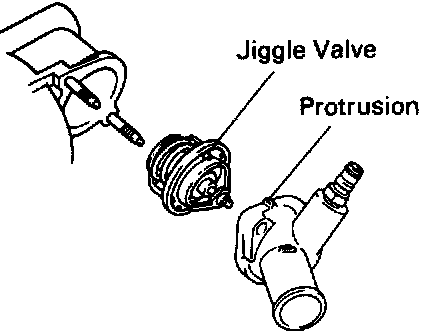 (b) Align the jiggle valve of the thermostat with protrusion of the water inlet housing and, insert the thermostat in the water inlet housing.