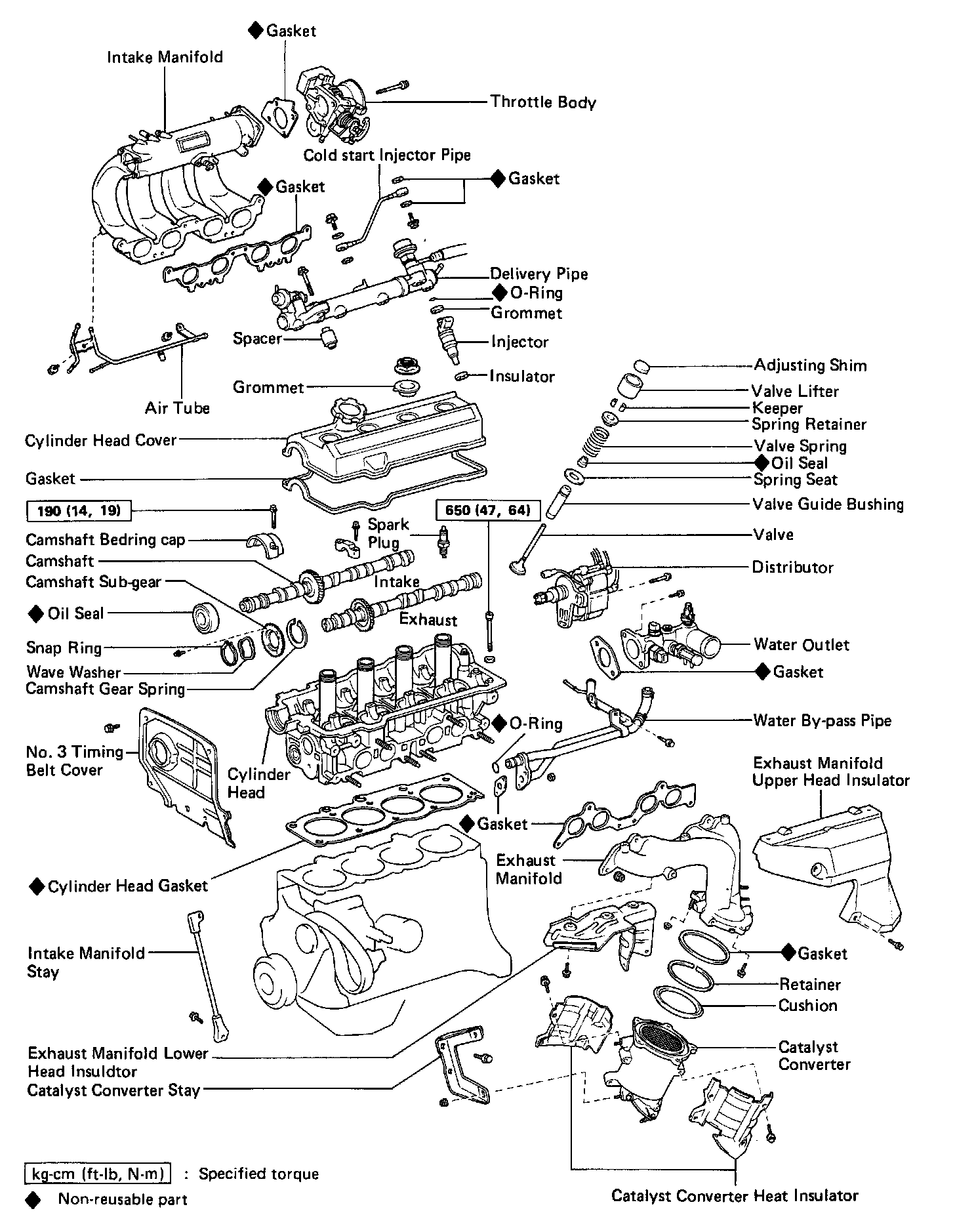 29. Install the new gasket and the intake manifold with the two bolts and six nuts. Torque to 19 N.m (14 ft.lbs).