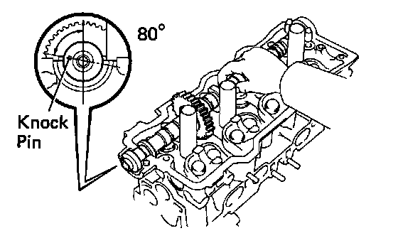 15. Set the knock pin of the intake cam at 10° BTDC of cam angle as shown.