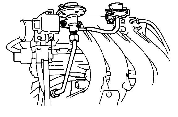 36. Install the new gasket and the EGR valve with the union nut and two mount bolts. Torque the union nut to 59 Nm (43 ft.lbs) and the two mount bolts to 13 N.m (9 ft.lbs).